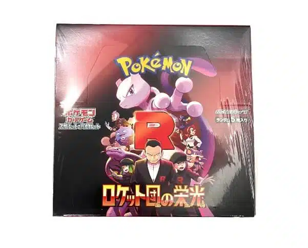 Authentic Japanese Pokemon Glory of Team Rocket booster box. Factory sealed with 30 packs. Features Team Rocket’s Mewtwo ex SAR ($355+), first Team Rocket’s Pokemon in 20 years, and Giovanni SAR. Direct from authorized distributors in Tokyo with guaranteed authenticity and competitive B2B wholesale pricing.